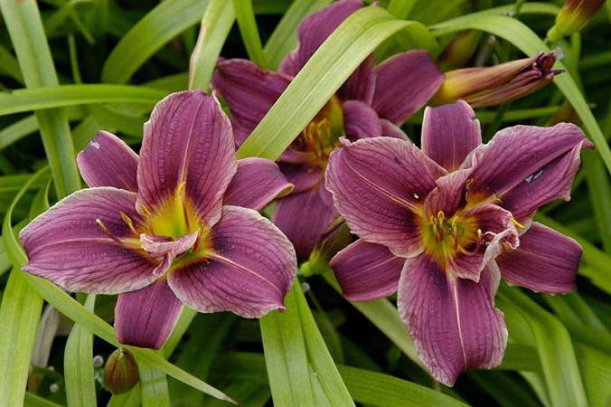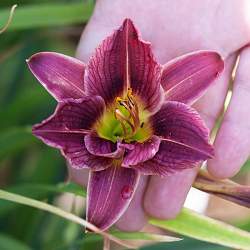 Лилейник Jockey Club (Джокей Клаб). Спящий, диплоид. Классный сорт! Цветок пурпурный с более светлыми краями и желтым горлом, крупный (13 см). Цветение обильное. Махровый.