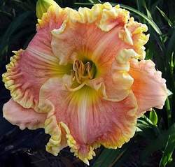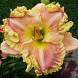 Цветок розовый с золотистой, очень пышной, гофрированной каймой, красивой формы. Относится к долго цветущим сортам. Легкий приятый аромат.