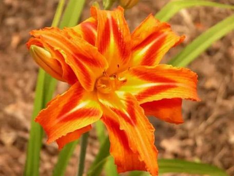 Лилейник Kwanso (Кванзо). Цветки оранжевые, махровые, с контрастным ярко-красным глазом. Высота 75-80 см; диаметр цветка 12 см. Средний (конец июля). Зона зимостойкости 4. Цветет с июля 35–40 дней. Количество цветков на одном цветоносе от 5 до 20 штук.