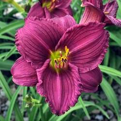 Лилейник Little Grapette (Литл Грапетте). Пурпурный с более темным глазом и небольшим желтым горлом, бордюрный. Полувечнозеленый, диплоид. Высота 30 см. Диаметр цветка 7 см. Ранний.