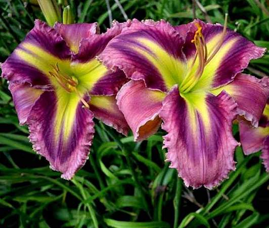 Лилейник Majestic Design (Маджестик Дизайн) — огромный! Светло-пурпурный с размытым темно-пурпурным глазом до края лепестков. Зеленое с желтым большое, треугольное горло с мерцающим эффектом. Гофрированные края.