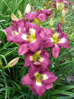 Лилейник Moroccan Sunrise (Мороккан Санрайз). Высота растения 50см, цветок темно-сиреневый с зеленым горлом. Цветение июнь-июль.