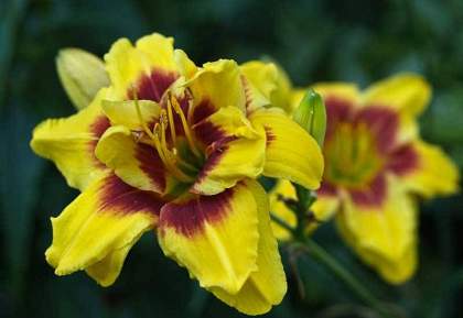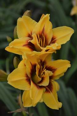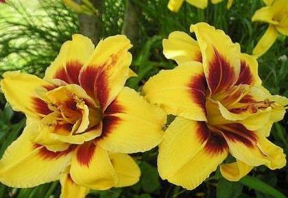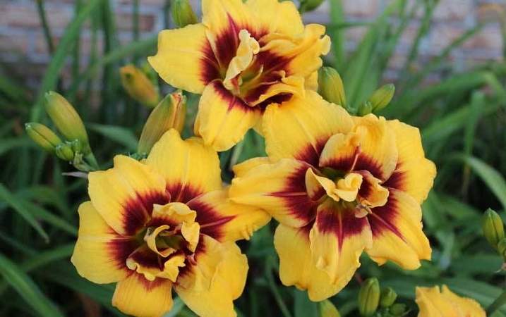 У лилйника золотисто-желтый цветок с большим темно-красным глазом на всех махровых и гофрированных по краям лепестках. Они имеют плотную структуру. Необходимы открытые, солнечные места для посадки или полутень, но при этом цветение будет не так обильно. Почва нужна увлажненная и удобренная перегноем.