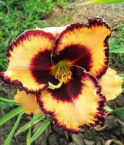 Лилейник Open my eyes (Опен Му Айз). Это представитель тетраплоидного типа, достигающий в высоту 60 см. Он отличается повторным цветением, выносливостью и принадлежит к вечнозеленому типу. В период цветения дает гофрированные, кремово-бежевые цветы, с насыщенным винным глазом и каймой, с зеленым горлом. Очень ароматный и обильно цветущий.