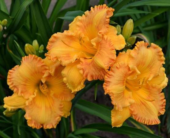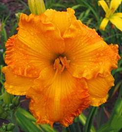 Лилейник Orange Nassau (Орандж Нассау). Спящий, диплоид. Нарядный, золотисто-желтый с оранжевым оттенком; солнечный гофрированный цветок с плотной текстурой лепестков. Диаметр цветков 14 см. Высота 56 см.