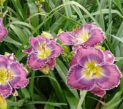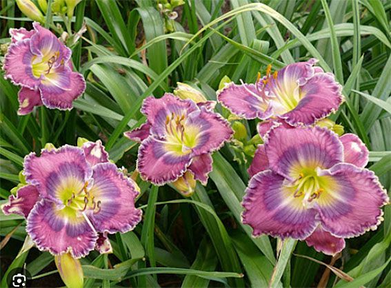 Лилейник Pacifica (Пацифика). Тетраплоид. EV. Крупный, светло-пурпурный с темно-лавандовым глазом и каймой. Горло зеленое. Красивая гофрированная кромка. Высота цветоноса 84 см. Диаметр цветка 15 см. Срок цветения средне-ранний. Ароматный.