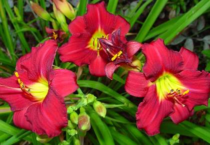 Лилейник Pardon Me (Пардон Ми). Ярко-красный с зелёным горлом, миниатюрный, ароматный, повторное цветение.