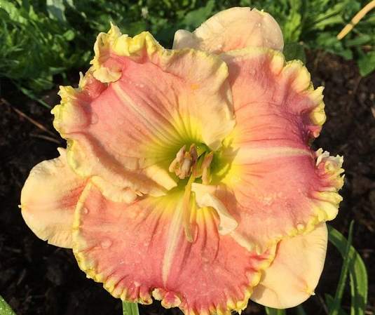 Лилейник Polar Dusk (Полар Даск) — очень крупный! Нежный, розовый, с алмазным напылением и пышной кремово-лимонной окантовкой.