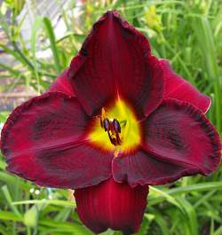 Лилейник Purple Rain (Пёпл Рейн). Тетраплоид. Широкий, плотный, бархатистый, темно-фуксиново-красный с тёмно зелёным горлом. Зона зимостойкости 3 (-40 °C). Роскошный лилейник.