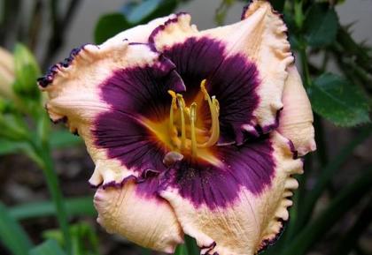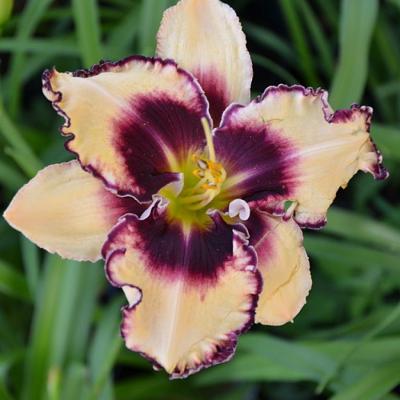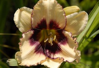 Лилейник Sabine Bauer (Сабина Бауэр). Цветок кремовый с темно-бордовым глазом и каймой, горло зеленое, крупный, ароматный сорт!