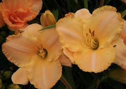 Лилейник Serena Sunburst (Серена Санбёрст). Светло-персиковый крупный цветок с гофрированной каймой, плотной текстуры. Тип вегетации — Спящий. Мощный куст с обильным и продолжительным цветением.