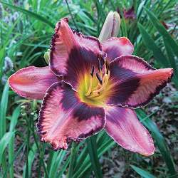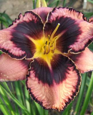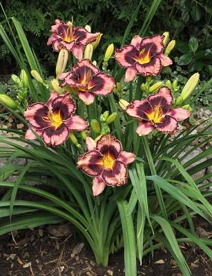 Лилейник Simmons Overture (Симмонс Увертюр). Цветки необычного коричневато-розового цвета, горло желтое, глаз темно-пурпурный. Цветки очень крупные, 15 см в диаметре. Цветение сверх обильное. Высота 65 см.