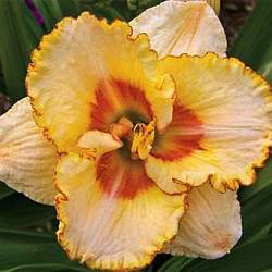Лилейник Sixth Sense (Сикс Сенс). Цветок крупный, кремовый с темным глазом, такой же каймой и зеленым горлом.