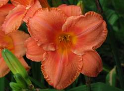 Лилейник South Seas (Саус Сиз). Кораллово-розовый с более тёмным центром, гофрированным краем и жёлтым горлом. Цветки душистые, собраны по 2-10 в раскидистые соцветия. Высота около 65 см, диаметр цветка 14 см. Цветёт в июле-августе. Неприхотлив. Зона зимостойкости: 3 (-40 °С).