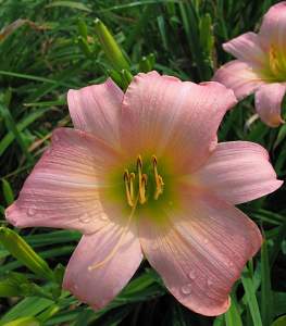 Лилейник South Seas (Саус Сиз). Кораллово-розовый с более тёмным центром, гофрированным краем и жёлтым горлом. Цветки душистые, собраны по 2-10 в раскидистые соцветия. Высота около 65 см, диаметр цветка 14 см. Цветёт в июле-августе. Неприхотлив. Зона зимостойкости: 3 (-40 °С).