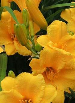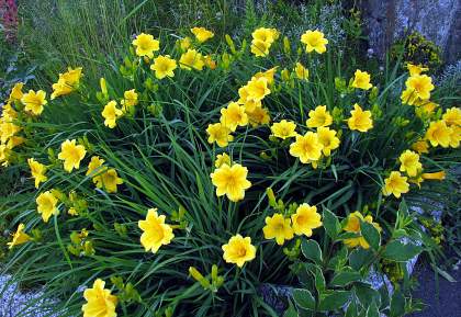 Лилейник Stella d'Oro (Стелла д'Оро). Этот сорт пользуется заслуженной популярностью за продолжительное, в несколько волн цветение — с поздней весны до осени. Каждый лютично-желтый цветок с тонким ароматом держится на растении до 16 часов. Бесспорным достоинством сорта является его компактность и способность быстро разрастаться.