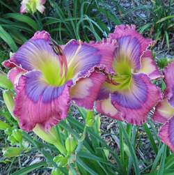 Лилейник The Colorado Kid (Зе Колорадо Кид). TET, SEV. Лавандово-розовый с фиолетово-голубоватым глазом с вишневым контуром. Горло маленькое, зеленое. Высота в цвету 74 см. Диаметр цветка 15 см. Срок цветения средне-поздний.