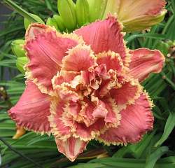 Лилейник Unlock the Stars (Анлок Зе Старс). Цветки махровые, светло-вишнёво-розовые с жёлтым глазком и такой же гофрированной каймой!