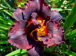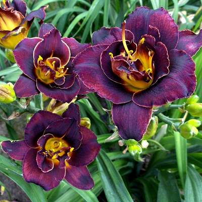 Лилейник Voodoo Dancer (Вуду Дансер). Цветок махровый, темный, пурпурно-черный с зеленым горлом. Ароматный сорт очень насыщенного оттенка!