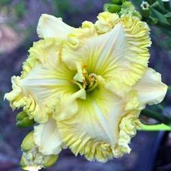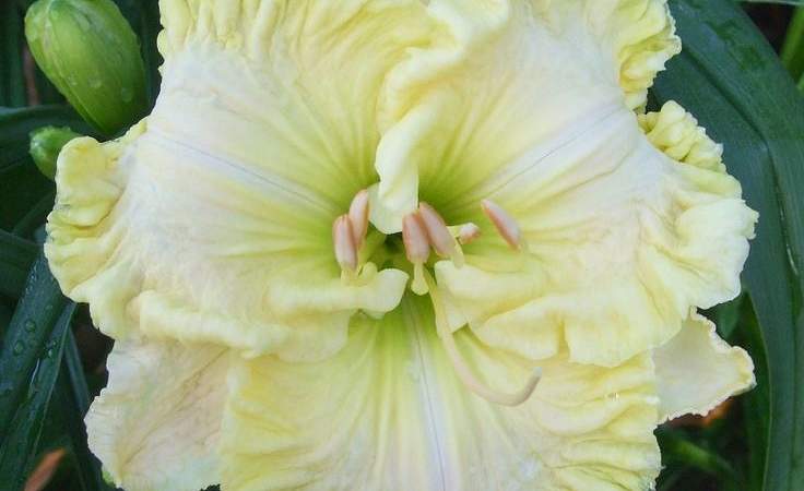 Лилейник White Wizard (Вайт Визард). TET, SEV. Чисто-бело-лимонный. В зоне глаза скульптурные жилки. Кайма широкая, кремово-зеленая, экзотически гофрированная. Высота в цвету 71 см. Диаметр цвета 15 см. Срок цветения средне-ранний. Цветок невероятный! На юге цветет дважды за сезон.