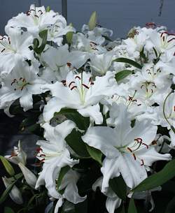 Восточные гибриды. Лилии поразительной красоты, их называют аристократами в мире лилий за экзотическую красоту необычайно привлекательных ароматных цветков. Цветки очень крупные, просто огромные, экзотических окрасок: бело-розовые, белые, малиновые, розовые с крапинками и полосками по центру волнистых лепестков или без них. Цветут в июле-сентябре. Необходимо солнечное место, хорошо защищенное от ветра, поскольку растения высокорослые с очень крупными цветками. Могут также расти в лёгкой тени деревьев. Главное правило — глубокая посадка, не менее 15 см, для защиты луковиц зимой.