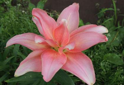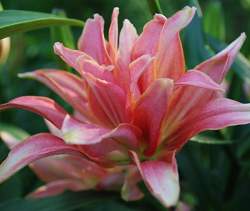 Лилия Aphrodite (Афродита). Цветок нежно-розовый без крапа, махровый. Неприхотливая и в то же время очень привлекательная лилия. Цветение длительное, цветки крупные, махровые.