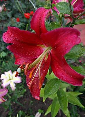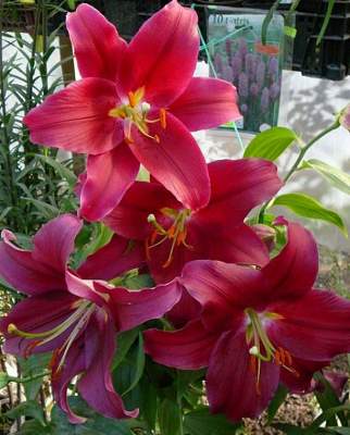 Лилия Arabian Red (Арабиан Ред). Превосходный сорт темно-красного цвета. Лепестки широкие, центральная жилка более темная. Пыльники оранжевые. Цветок до 20 см. Высота 110 см.