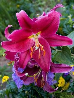 Лилии. Подходят для любого цветочного оформления участков. Низкорослые сорта и виды используют для посадок на бордюрах, высокие лилии используют для оформления дальнего плана и в солитерных посадках. Хороши они в группах, посаженные куртинами на газоне. Красиво смотрятся на фоне деревьев и кустарников и в сочетании со многими однолетниками и многолетниками. Некоторые низкорослые лилии можно применять для оформления каменистых участков. Используя при оформлении цветников лилии разного срока цветения, можно ими любоваться с июня до середины сентября.