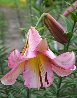 ОТ-гибриды. Были получены в результате скрещиваний между лилиями групп Oriental (Восточные) и Trumpet (Трубчатые), а также между их гибридами. ОТ-гибриды дают прекрасную срезку и хорошо переносят транспортировку, подходят для выращивания в открытом грунте. Цветки — очень крупные широкочашевидной или воронковидной формы, направлены вверх или в сторону. Растения обладают прочными, крепкими побегами. Требуют хорошо освещенных мест с защитой от ветра. Необходимы дренированные почвы с нейтральной реакцией. С наступлением первых заморозков, до промерзания почвы, желательно замульчировать посадки листьями или торфом, смешанными с листовым перегноем, на высоту 10-15 см.