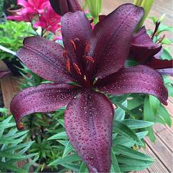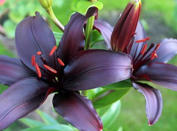 Лилия Black List (Блэк Лист). Цветки крупные, диаметром до 16 см, темно-фиолетовые, почти черные. Лилия зацветает в конце июня-первой половине июля.