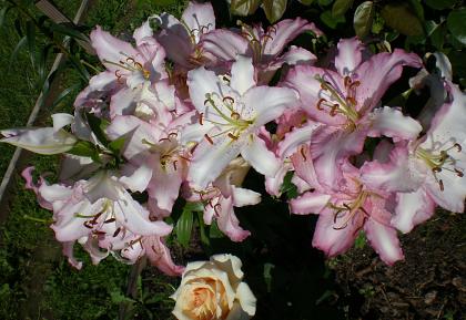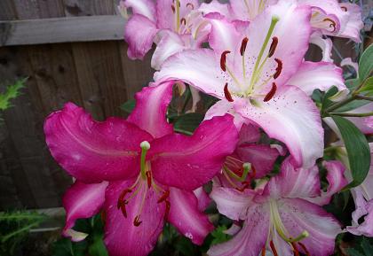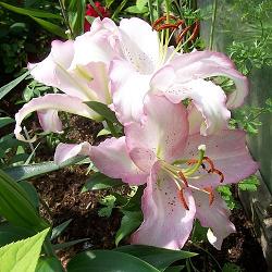 Восточные гибриды. Лилии поразительной красоты, их называют аристократами в мире лилий за экзотическую красоту необычайно привлекательных ароматных цветков. Цветки очень крупные, просто огромные, экзотических окрасок: бело-розовые, белые, малиновые, розовые с крапинками и полосками по центру волнистых лепестков или без них. Цветут в июле-сентябре. Необходимо солнечное место, хорошо защищенное от ветра, поскольку растения высокорослые с очень крупными цветками. Могут также расти в лёгкой тени деревьев. Главное правило — глубокая посадка, не менее 15 см, для защиты луковиц зимой.