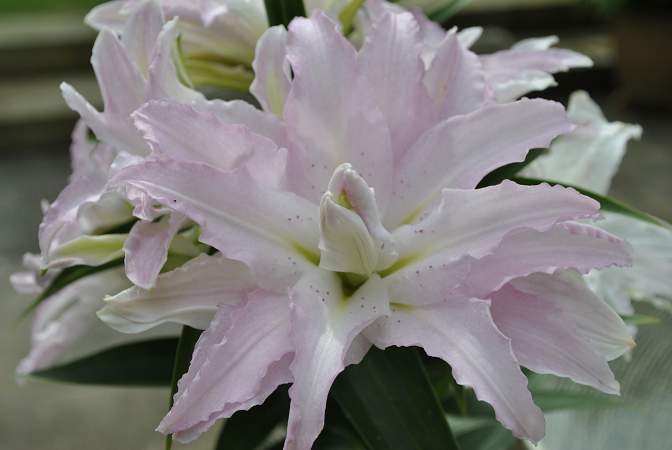 Лилия Canova (Канова). Цветок крупный, бело-розовый с редким крапом. Окраска очень привлекательная, нежная. Высота 110 см.