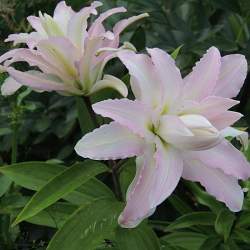 Восточные гибриды. Лилии поразительной красоты, их называют аристократами в мире лилий за экзотическую красоту необычайно привлекательных ароматных цветков. Цветки очень крупные, просто огромные, экзотических окрасок: бело-розовые, белые, малиновые, розовые с крапинками и полосками по центру волнистых лепестков или без них. Цветут в июле-сентябре. Необходимо солнечное место, хорошо защищенное от ветра, поскольку растения высокорослые с очень крупными цветками. Могут также расти в лёгкой тени деревьев. Главное правило — глубокая посадка, не менее 15 см, для защиты луковиц зимой.