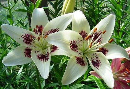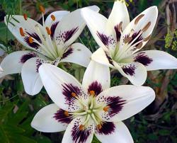 Лилии. Подходят для любого цветочного оформления участков. Низкорослые сорта и виды используют для посадок на бордюрах, высокие лилии используют для оформления дальнего плана и в солитерных посадках. Хороши они в группах, посаженные куртинами на газоне. Красиво смотрятся на фоне деревьев и кустарников и в сочетании со многими однолетниками и многолетниками. Некоторые низкорослые лилии можно применять для оформления каменистых участков.Используя при оформлении цветников лилии разного срока цветения, можно ими любоваться с июня до середины сентября.