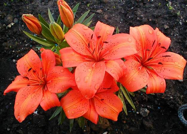 Лилии. Подходят для любого цветочного оформления участков. Низкорослые сорта и виды используют для посадок на бордюрах, высокие лилии используют для оформления дальнего плана и в солитерных посадках. Хороши они в группах, посаженные куртинами на газоне. Красиво смотрятся на фоне деревьев и кустарников и в сочетании со многими однолетниками и многолетниками. Некоторые низкорослые лилии можно применять для оформления каменистых участков.Используя при оформлении цветников лилии разного срока цветения, можно ими любоваться с июня до середины сентября.