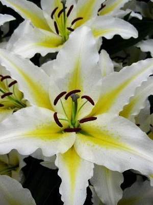 Лилии. Подходят для любого цветочного оформления участков. Низкорослые сорта и виды используют для посадок на бордюрах, высокие лилии используют для оформления дальнего плана и в солитерных посадках. Хороши они в группах, посаженные куртинами на газоне. Красиво смотрятся на фоне деревьев и кустарников и в сочетании со многими однолетниками и многолетниками. Некоторые низкорослые лилии можно применять для оформления каменистых участков.Используя при оформлении цветников лилии разного срока цветения, можно ими любоваться с июня до середины сентября.