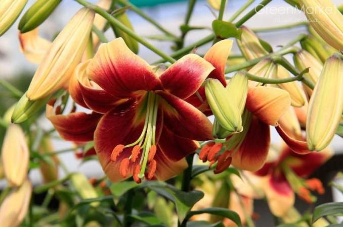 Лилии. Подходят для любого цветочного оформления участков. Низкорослые сорта и виды используют для посадок на бордюрах, высокие лилии используют для оформления дальнего плана и в солитерных посадках. Хороши они в группах, посаженные куртинами на газоне. Красиво смотрятся на фоне деревьев и кустарников и в сочетании со многими однолетниками и многолетниками. Некоторые низкорослые лилии можно применять для оформления каменистых участков.Используя при оформлении цветников лилии разного срока цветения, можно ими любоваться с июня до середины сентября.