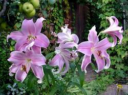 Лилии. Подходят для любого цветочного оформления участков. Низкорослые сорта и виды используют для посадок на бордюрах, высокие лилии используют для оформления дальнего плана и в солитерных посадках. Хороши они в группах, посаженные куртинами на газоне. Красиво смотрятся на фоне деревьев и кустарников и в сочетании со многими однолетниками и многолетниками. Некоторые низкорослые лилии можно применять для оформления каменистых участков.Используя при оформлении цветников лилии разного срока цветения, можно ими любоваться с июня до середины сентября.