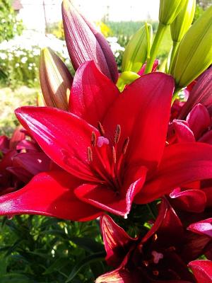 Лилия Dynamix (Динамикс). Высота 110 см, цвет алый с переливами.