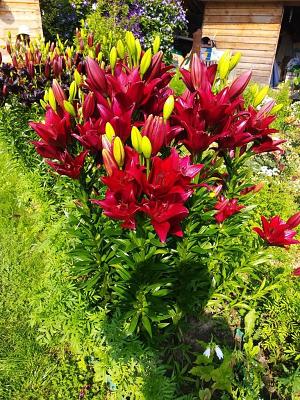 Лилии. Подходят для любого цветочного оформления участков. Низкорослые сорта и виды используют для посадок на бордюрах, высокие лилии используют для оформления дальнего плана и в солитерных посадках. Хороши они в группах, посаженные куртинами на газоне. Красиво смотрятся на фоне деревьев и кустарников и в сочетании со многими однолетниками и многолетниками. Некоторые низкорослые лилии можно применять для оформления каменистых участков.Используя при оформлении цветников лилии разного срока цветения, можно ими любоваться с июня до середины сентября.