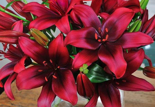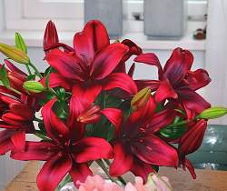 Лилии. Подходят для любого цветочного оформления участков. Низкорослые сорта и виды используют для посадок на бордюрах, высокие лилии используют для оформления дальнего плана и в солитерных посадках. Хороши они в группах, посаженные куртинами на газоне. Красиво смотрятся на фоне деревьев и кустарников и в сочетании со многими однолетниками и многолетниками. Некоторые низкорослые лилии можно применять для оформления каменистых участков.Используя при оформлении цветников лилии разного срока цветения, можно ими любоваться с июня до середины сентября.
