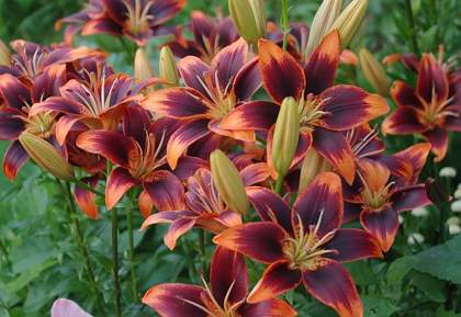 Азиатские гибриды. Наиболее приспособленный к условиям Средней полосы России раздел лилий. Сорта этой группы имеют наибольшее разнообразие по окраске, строению цветков, по высоте и срокам цветения. У них, за исключением единичных сортов, отсутствует аромат. Ассортимент этой группы очень обширен.