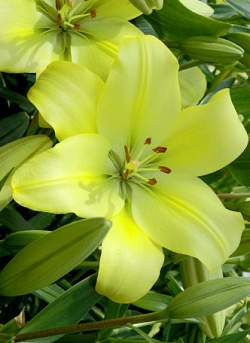 Лилии. Подходят для любого цветочного оформления участков. Низкорослые сорта и виды используют для посадок на бордюрах, высокие лилии используют для оформления дальнего плана и в солитерных посадках. Хороши они в группах, посаженные куртинами на газоне. Красиво смотрятся на фоне деревьев и кустарников и в сочетании со многими однолетниками и многолетниками. Некоторые низкорослые лилии можно применять для оформления каменистых участков.Используя при оформлении цветников лилии разного срока цветения, можно ими любоваться с июня до середины сентября.