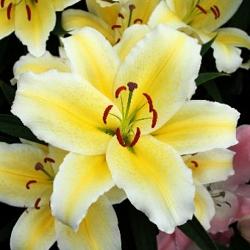 Восточные гибриды. Лилии поразительной красоты, их называют аристократами в мире лилий за экзотическую красоту необычайно привлекательных ароматных цветков. Цветки очень крупные, просто огромные, экзотических окрасок: бело-розовые, белые, малиновые, розовые с крапинками и полосками по центру волнистых лепестков или без них. Цветут в июле-сентябре. Необходимо солнечное место, хорошо защищенное от ветра, поскольку растения высокорослые с очень крупными цветками. Могут также расти в лёгкой тени деревьев. Главное правило — глубокая посадка, не менее 15 см, для защиты луковиц зимой.