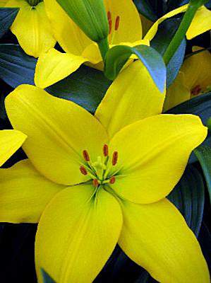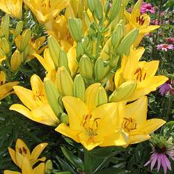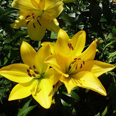 Лилии. Подходят для любого цветочного оформления участков. Низкорослые сорта и виды используют для посадок на бордюрах, высокие лилии используют для оформления дальнего плана и в солитерных посадках. Хороши они в группах, посаженные куртинами на газоне. Красиво смотрятся на фоне деревьев и кустарников и в сочетании со многими однолетниками и многолетниками. Некоторые низкорослые лилии можно применять для оформления каменистых участков.Используя при оформлении цветников лилии разного срока цветения, можно ими любоваться с июня до середины сентября.