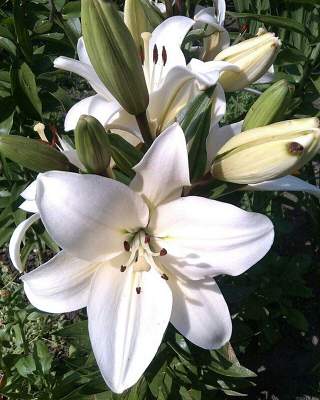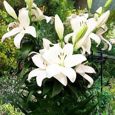 Лилия Kent (Кент). Цветок белый, без крапа, элегантный. Цветение обильное. Высота 90 см.