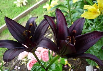 Лилии. Подходят для любого цветочного оформления участков. Низкорослые сорта и виды используют для посадок на бордюрах, высокие лилии используют для оформления дальнего плана и в солитерных посадках. Хороши они в группах, посаженные куртинами на газоне. Красиво смотрятся на фоне деревьев и кустарников и в сочетании со многими однолетниками и многолетниками. Некоторые низкорослые лилии можно применять для оформления каменистых участков.Используя при оформлении цветников лилии разного срока цветения, можно ими любоваться с июня до середины сентября.