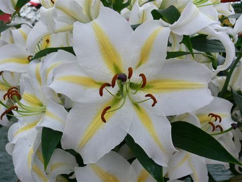 Восточные гибриды. Лилии поразительной красоты, их называют аристократами в мире лилий за экзотическую красоту необычайно привлекательных ароматных цветков. Цветки очень крупные, просто огромные, экзотических окрасок: бело-розовые, белые, малиновые, розовые с крапинками и полосками по центру волнистых лепестков или без них. Цветут в июле-сентябре. Необходимо солнечное место, хорошо защищенное от ветра, поскольку растения высокорослые с очень крупными цветками. Могут также расти в лёгкой тени деревьев. Главное правило — глубокая посадка, не менее 15 см, для защиты луковиц зимой.