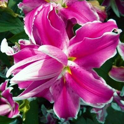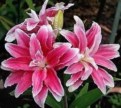 Восточные гибриды. Лилии поразительной красоты, их называют аристократами в мире лилий за экзотическую красоту необычайно привлекательных ароматных цветков. Цветки очень крупные, просто огромные, экзотических окрасок: бело-розовые, белые, малиновые, розовые с крапинками и полосками по центру волнистых лепестков или без них. Цветут в июле-сентябре. Необходимо солнечное место, хорошо защищенное от ветра, поскольку растения высокорослые с очень крупными цветками. Могут также расти в лёгкой тени деревьев. Главное правило — глубокая посадка, не менее 15 см, для защиты луковиц зимой.