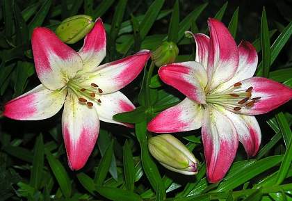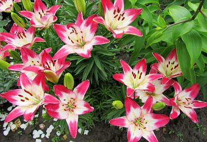 Азиатские гибриды. Наиболее приспособленный к условиям Средней полосы России раздел лилий. Сорта этой группы имеют наибольшее разнообразие по окраске, строению цветков, по высоте и срокам цветения. У них, за исключением единичных сортов, отсутствует аромат. Ассортимент этой группы очень обширен.